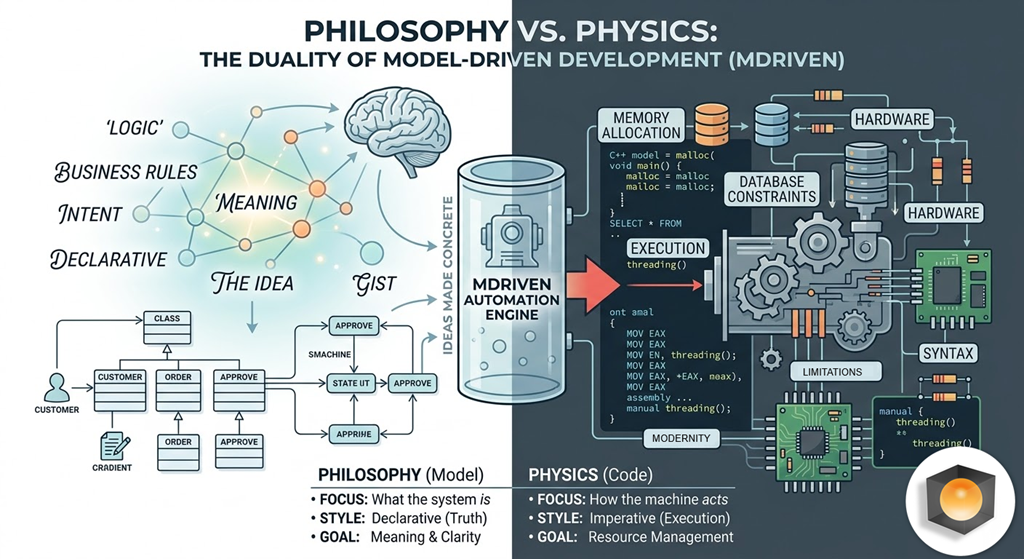 The shift from Gist and Modernity to Philosophy and Physics aligns MDriven with these foundational truths. Our goal is to ensure that the Philosophy (the Model) remains the primary governor of the system. By automating the Physics, we ensure that the “Idea” is never redundant and never lost. In an era of AI-generated noise, the Model is the only “Ground Truth” that remains.